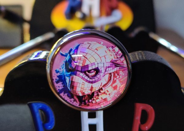 Matières de nos Lance-billes : Bouton Inox massif ou Laiton massif, poli miroir – Image sous verre effet métallisé selon couleurs.